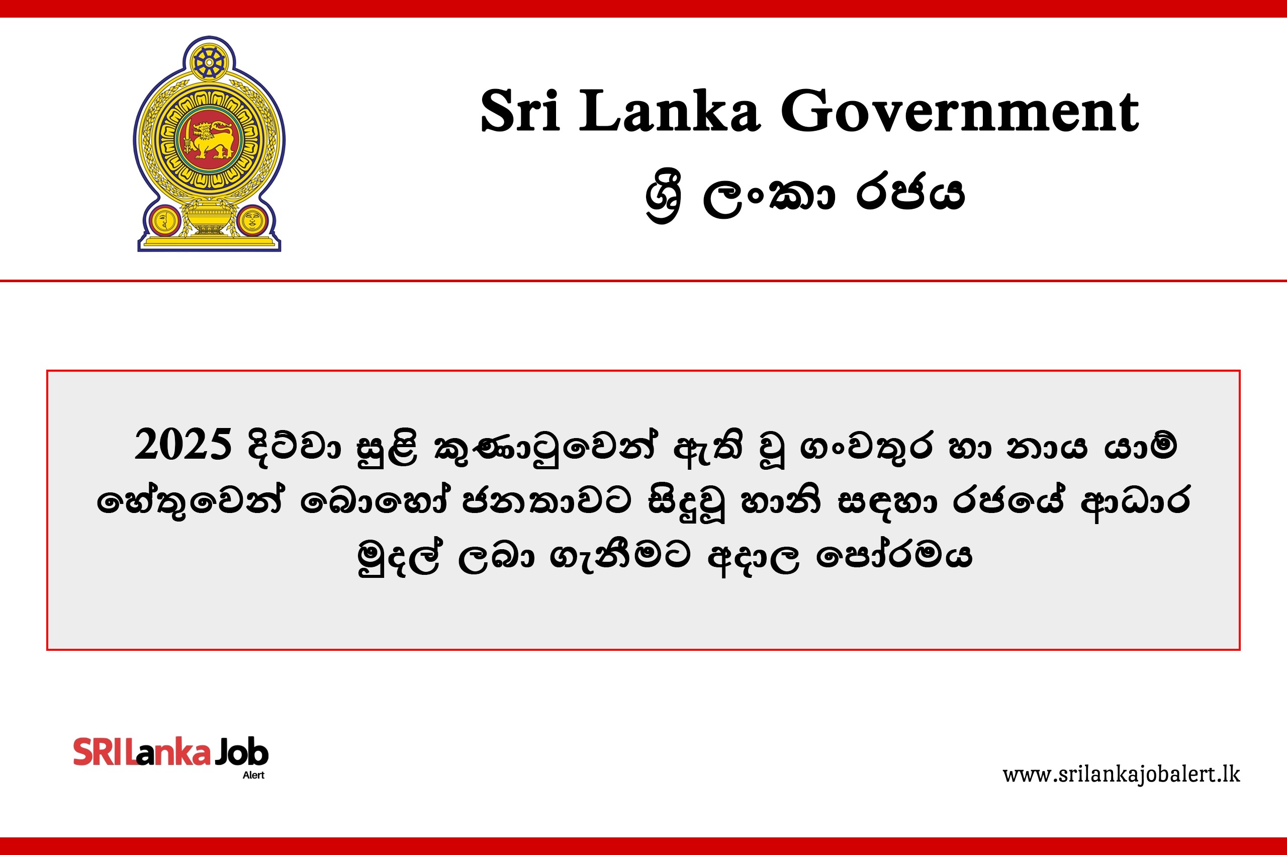 To receive this support, eligible citizens must submit the Government Disaster Assistance Application Form through their Grama Niladhari or Divisional Secretariat (DS Office).